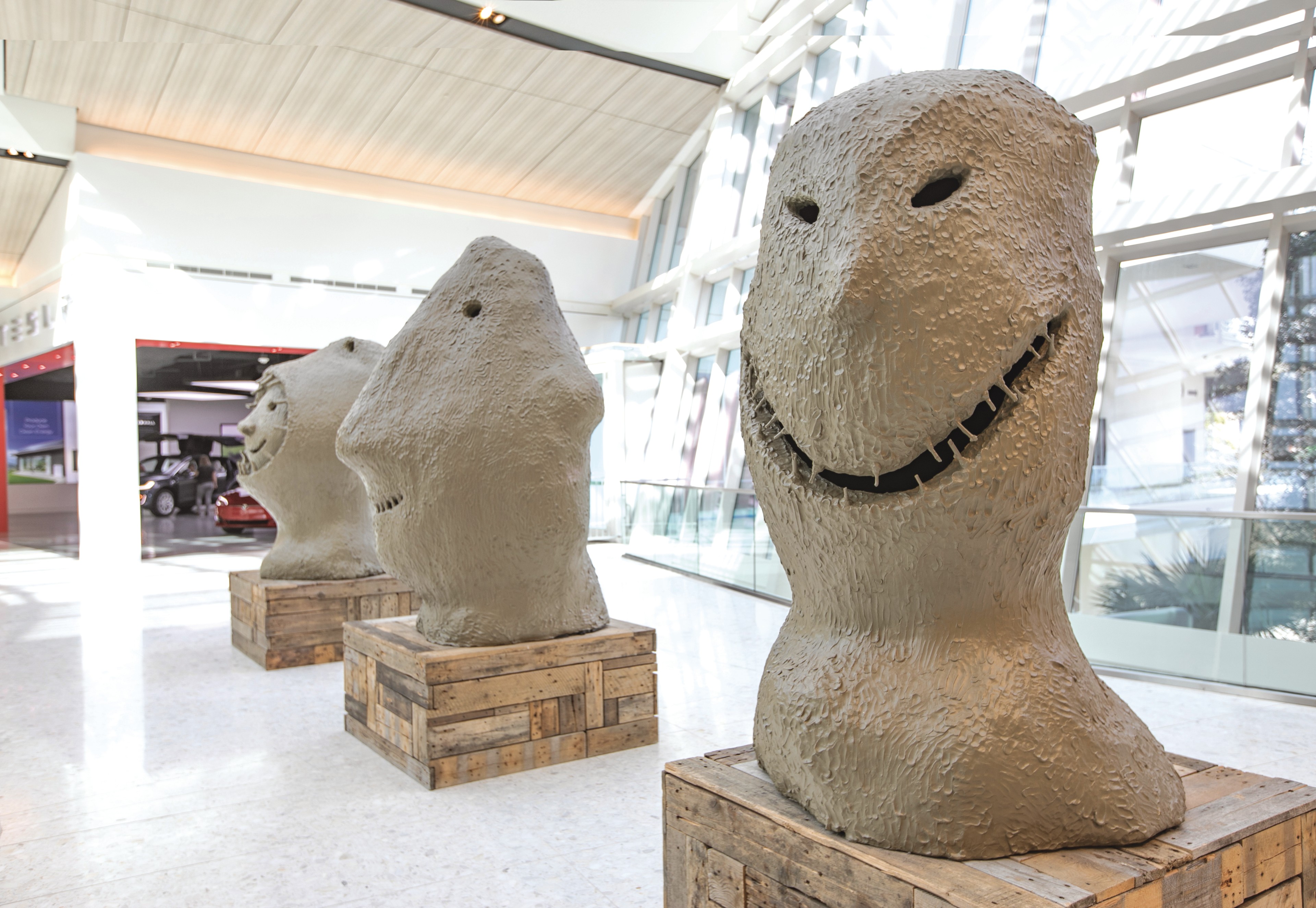 Since 2003, Ugo Rondinone has created several series of masks that began on the wall and later morphed into large-scale figures. The 12-part group moonrise, East are each titled January to December and represent the progress of the year, while the main title of the group refers to the rise of the moon, the start of night and the western sky.