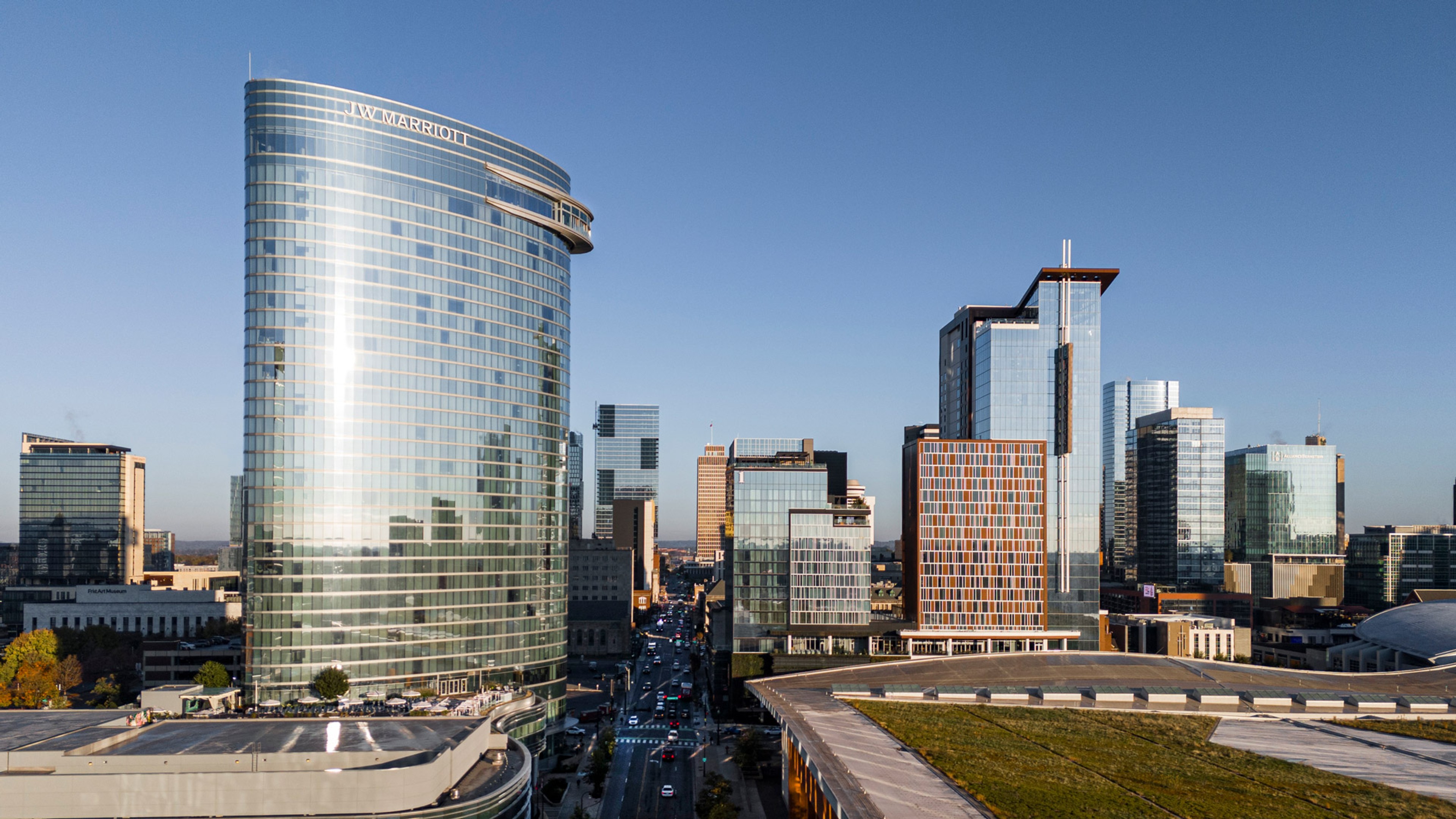 The JW Marriott Nashville is truly a one-of-a-kind luxury hotel. Highlights include a full-service, modern spa, a museum-worthy collection of contemporary art, a rooftop terrace and pool, world-class dining in three restaurants, and dramatic indoor/outdoor event spaces that complement the neighboring 16-acre Music City Center convention complex.