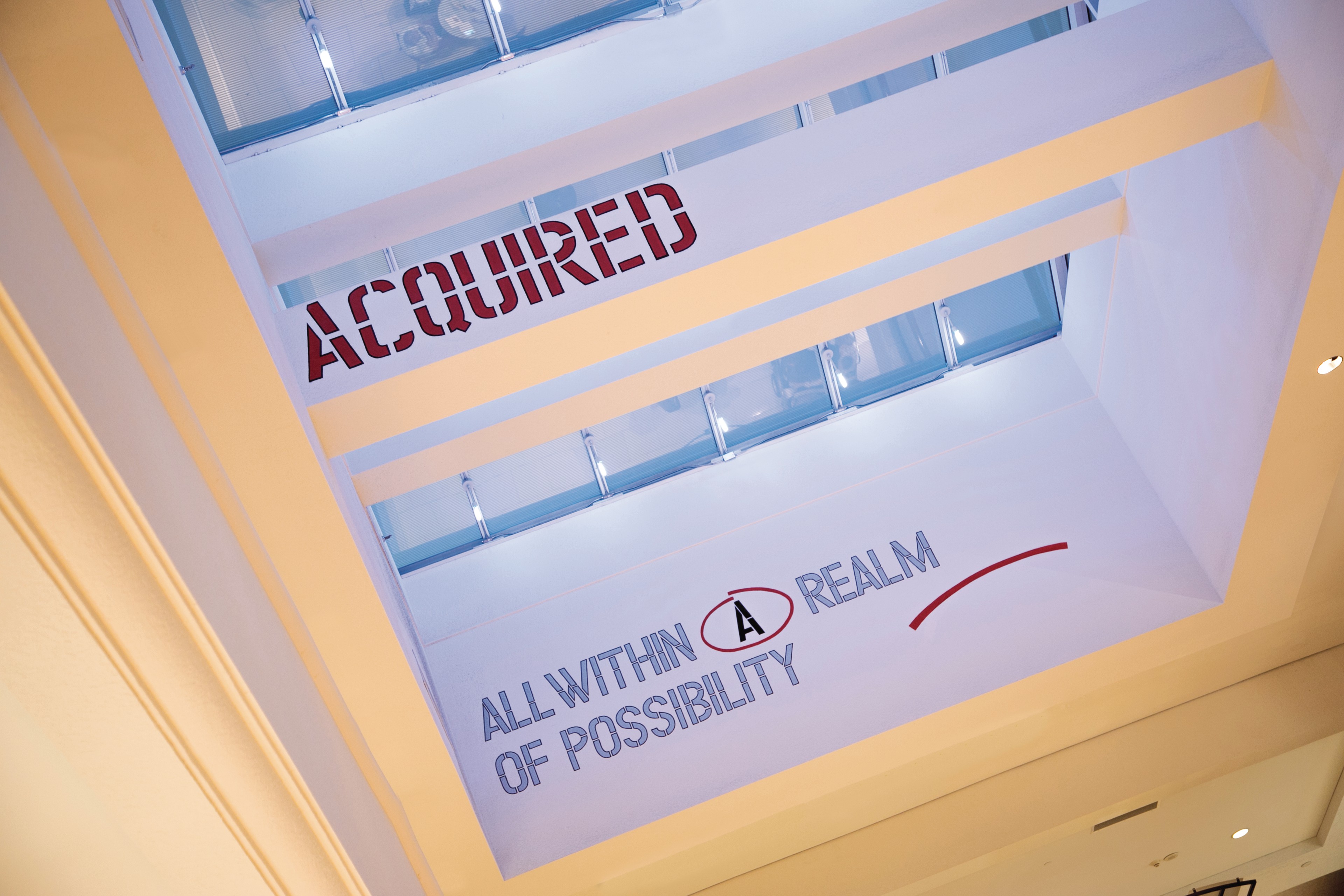 Weiner points to the actions and materials that people use every day; each beam in the work expressing a shift in mood and intention, and representing another stage in the equation that Weiner has set up. In describing the installation in an interview he noted, “It’s a matter (of) how we give value to things. Everything that can be admired is within the realm of possibility.”