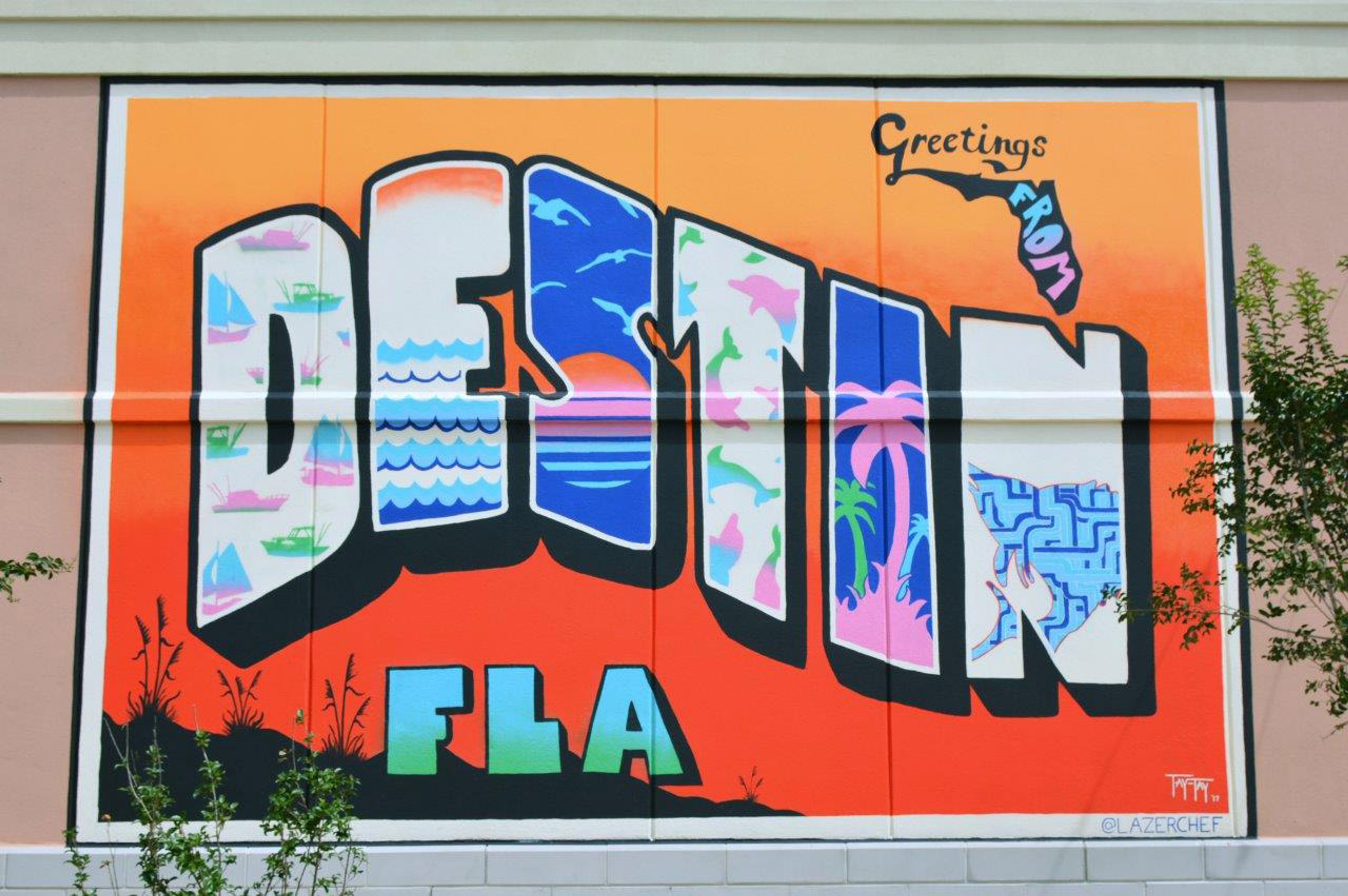 A native of Destin, Shaw attended elementary and middle school in Destin and high school in Ft. Walton Beach. He has an undergraduate degree in painting from Mississippi State and Master of Fine Arts in Sculpture from University of Georgia. Greetings is a site-specific mural at Destin Commons – a colorful postcard greeting welcoming all to a fabulous destination.