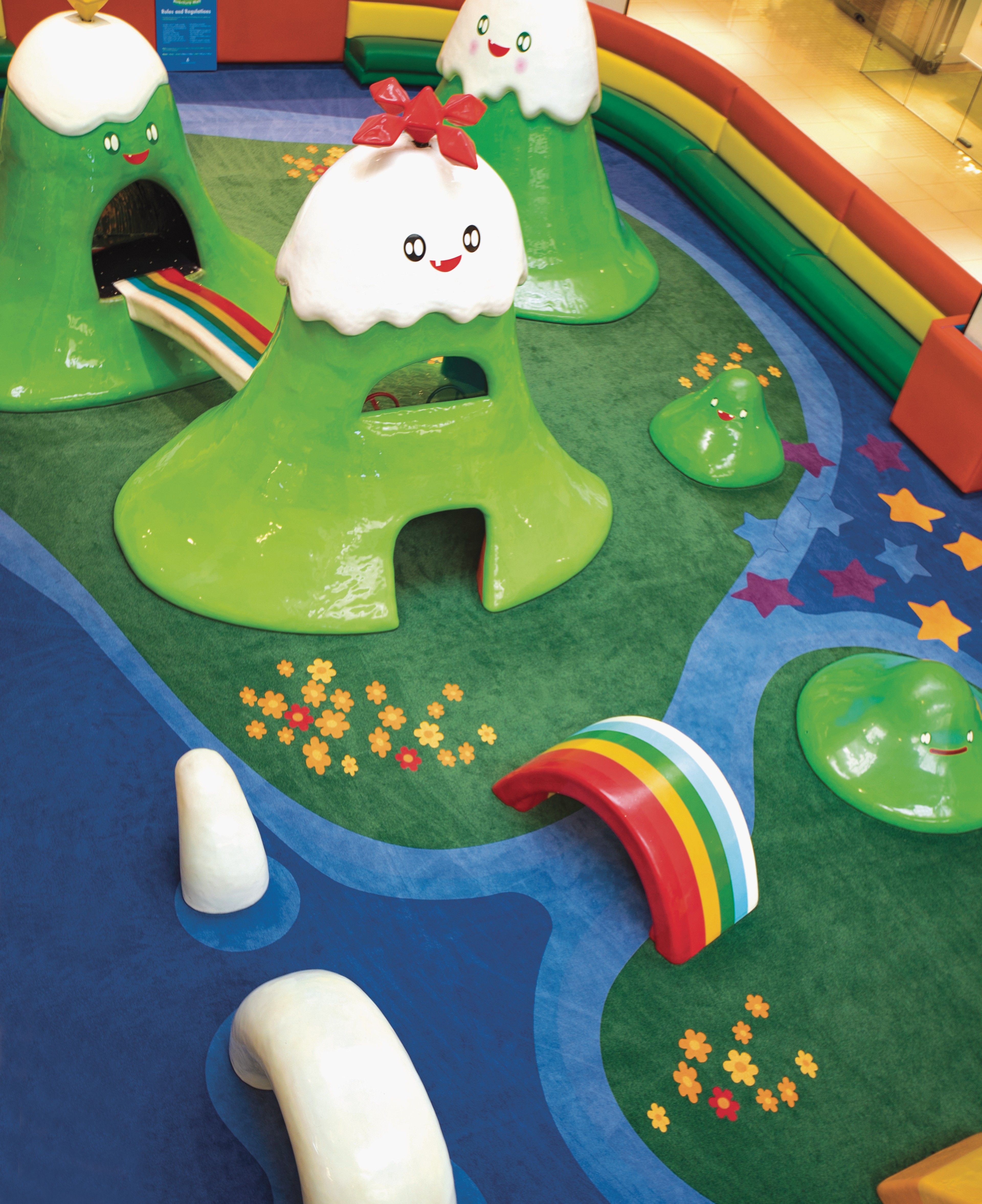 Rainbow Valley is South Florida’s first indoor interactive playground created as a site-specific installation by contemporary artists. Inspired by a story of the artists’ creation, the playground is a magical dream world in which children discover Peekoo, the baby mountain, and his adventures with his new friend, Cloudy, in the magical Rainbow Valley.