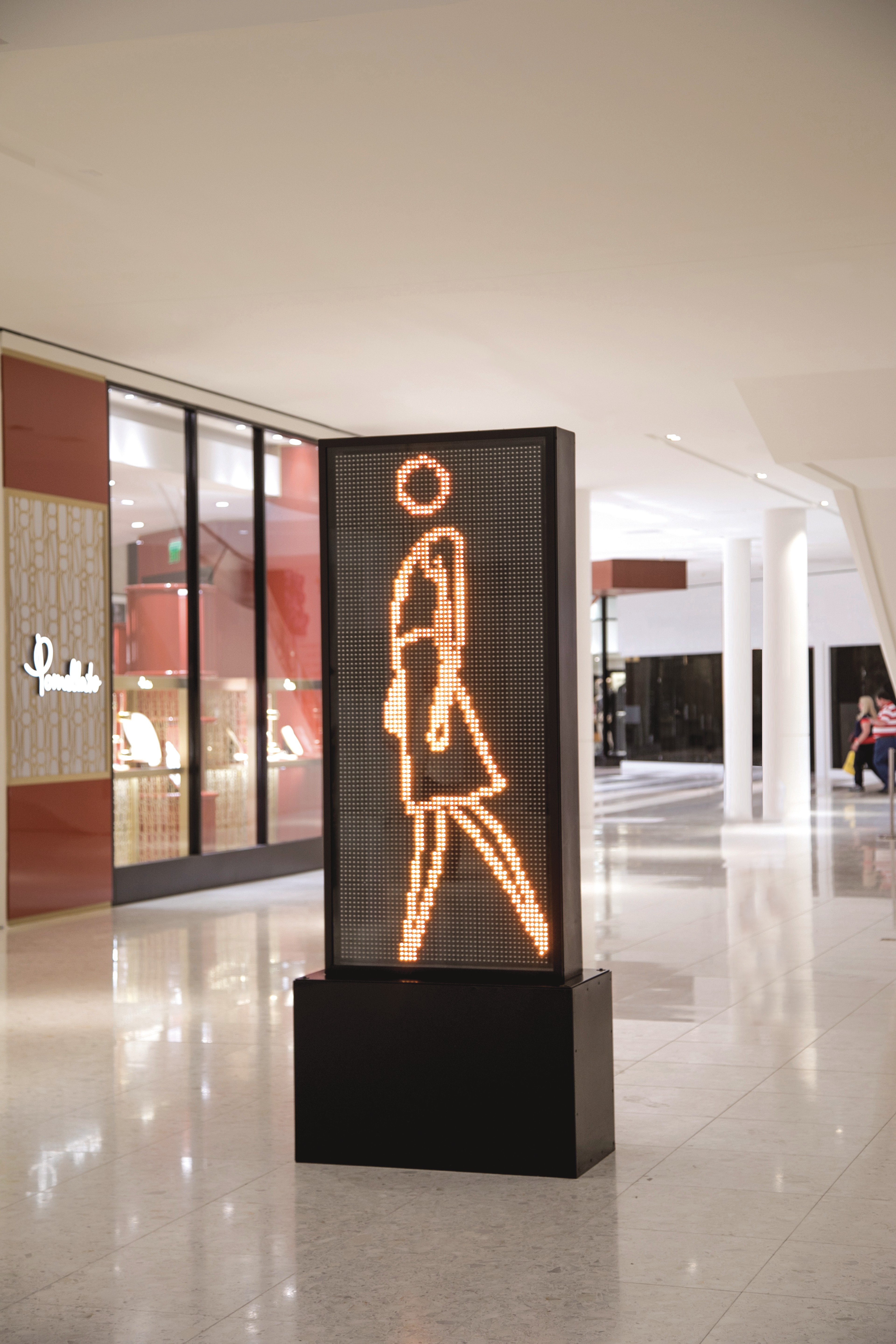 Julian Opie culls images from popular culture and transforms them into highly stylized digitized images. The artist also experiments with light and animation techniques to create “walking portraits” that are installed in public environments and interact with viewers going about their daily routines. His artwork has been featured in numerous solo and group exhibitions including the Shanghai Expo in China 2010.
